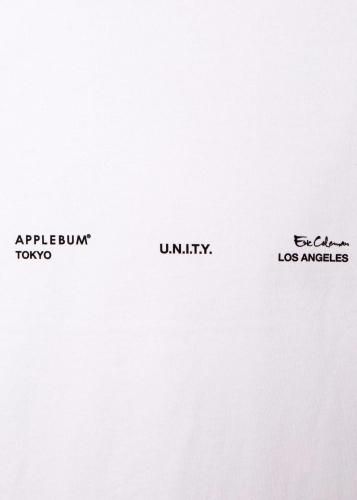 背面には「APPLEBUM® TOKYO」「U.N.I.T.Y.」「LOS ANGELES」に加え、Eric Coleman直筆サインのプリントを配置。